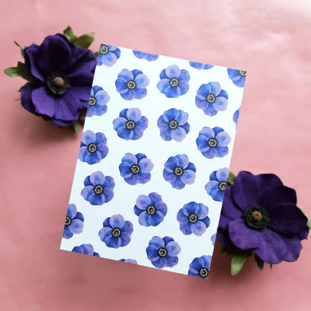 Wenskaart met print van een aquarel illustratie van anemonen.