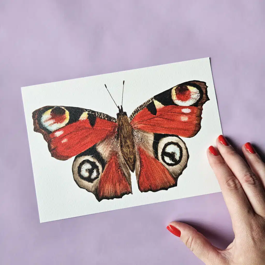 Print van een aquarel illustratie die ik maakte van een dagpauwoog.