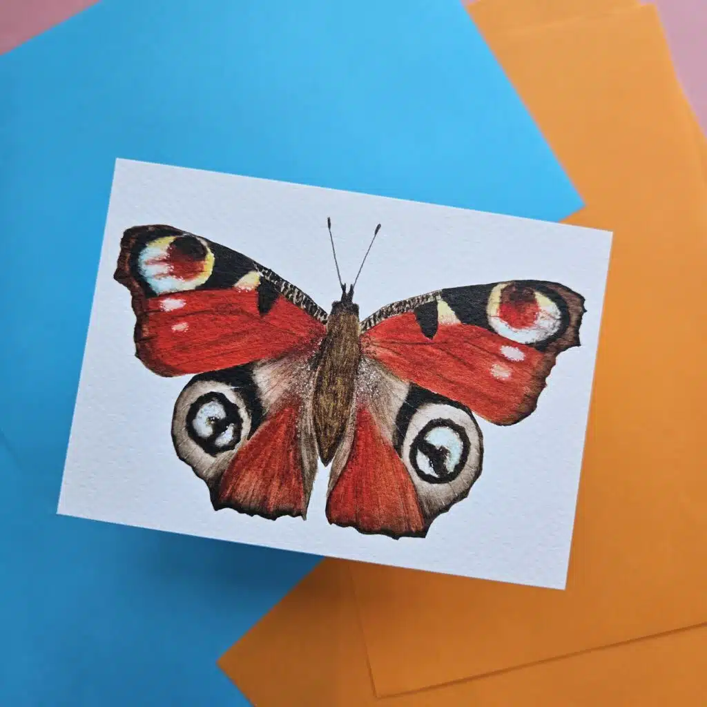 Wenskaart met print van een aquarel illustratie van een dagpauwoog.